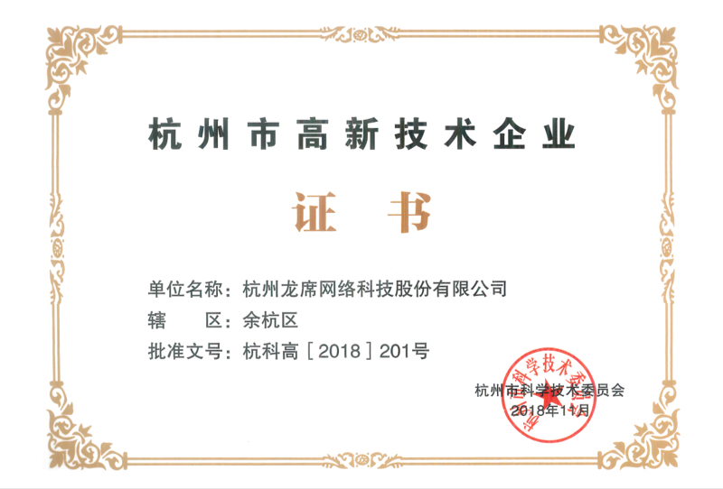 公司先后被評(píng)為杭州市雛鷹企業(yè)、軟件企業(yè)、浙江省科技型中小企業(yè)、國家科技型中小企業(yè)、杭州市高新技術(shù)企業(yè)、國家高新技術(shù)企業(yè)、